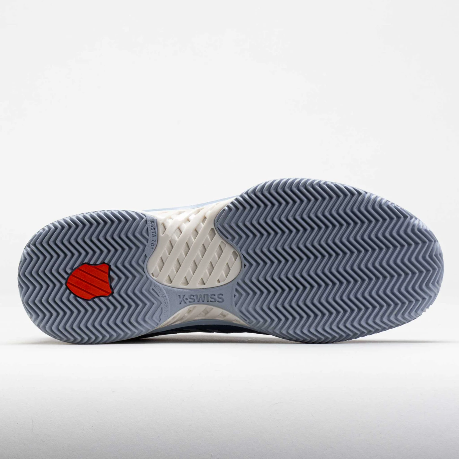 Outsole: Aosta 7.0® rubber compound provides reliable traction on clay courts.