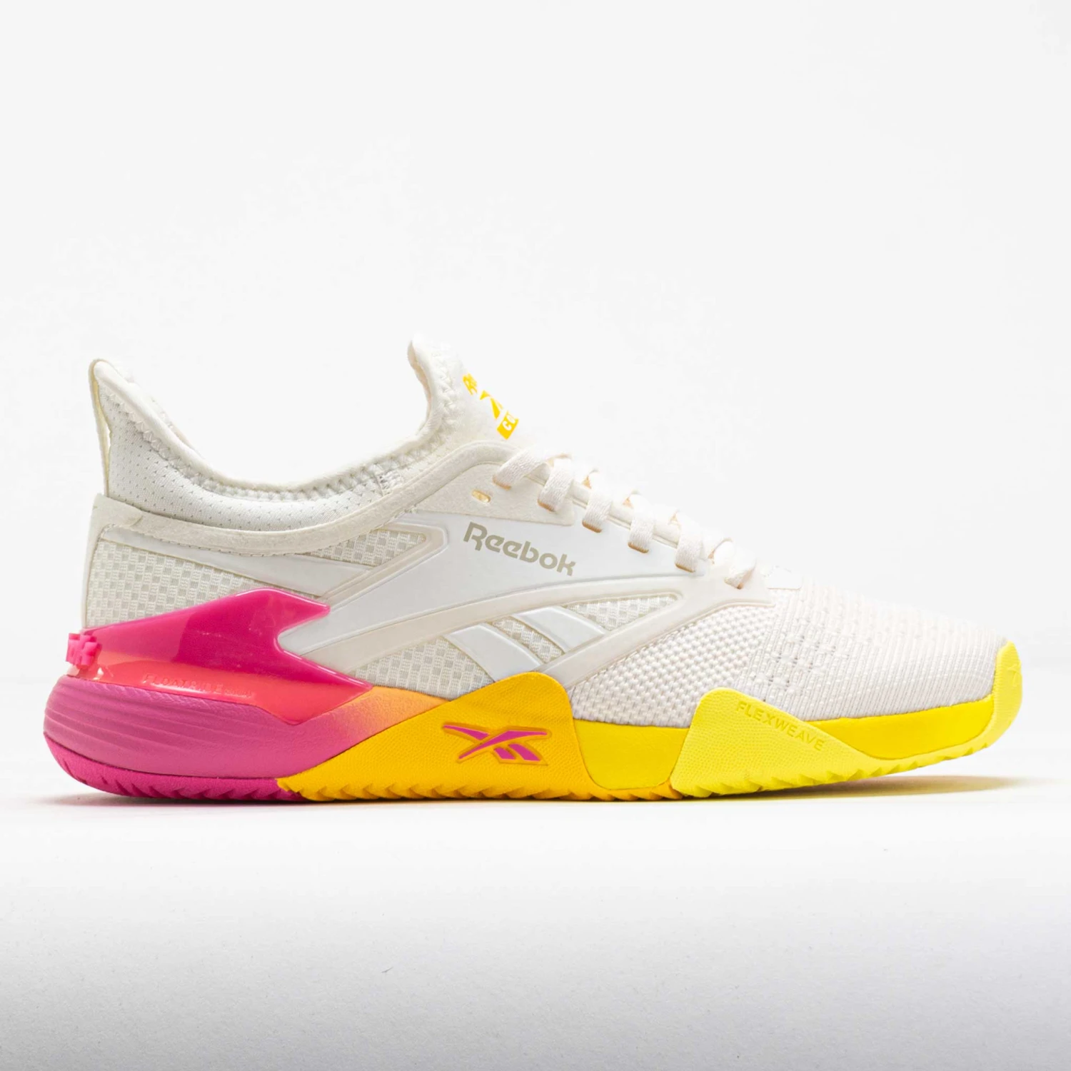 Take your talents from the gym to the court in the Reebok Nano Court! This versatile training shoe is perfect for tennis, pickleball, padel, racquetball or badminton. Slide into a stretchy Flexweave® upper and feel supported in key areas. Floatride Energy Foam in the midsole adds a light and energetic bounce to every move. Find your footing on any court surface under the herringbone Griptonite rubber outsole. Soft, grippy and supportive, the Reebok Nano Court lets you move freely during the match!